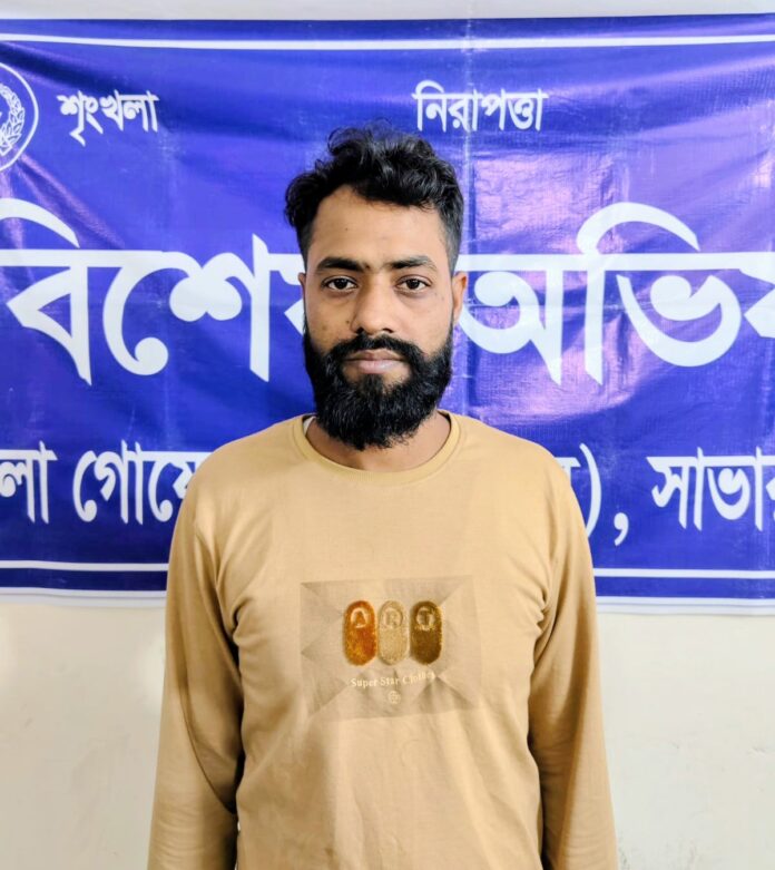 সাভার পৌরসভার মজিদপুর এলাকায় অভিযান চালিয়ে তাকে গ্রেপ্তার করা হয়।