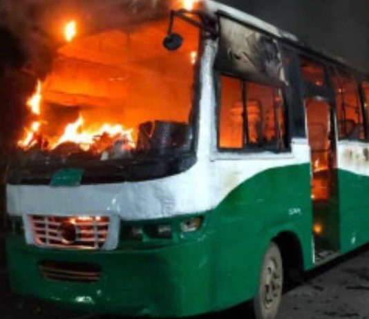 রাজধানীর প্রেসক্লাবের সামনে দুই বাসে আগুন