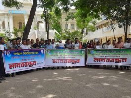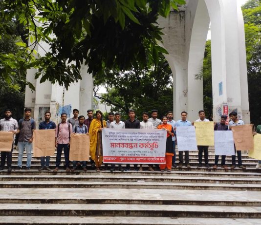 জবিতে মানববন্ধন, ১০ বছর চাকরি করেও নেই চাকরির নিশ্চয়তা